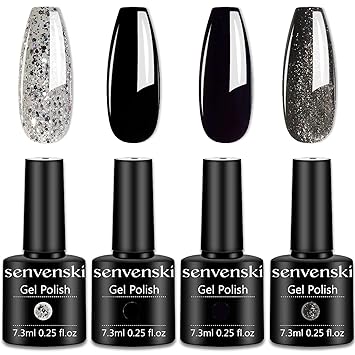Amazon Com Senvenski Gel Nail Polish Black White Dark Grey Silver Glitter Starrily Sparkle Crystal Shimmer Girlfriend Gift Soak Off Set Uv Led Art Varnish Kit 4 Colors Cs008 Beauty